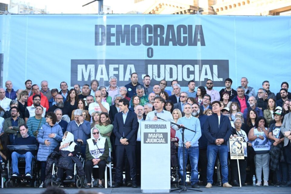 “No estamos atacando a nadie, estamos defendiendo nuestros derechos”, sostuvo Kicillof, quien realizó un trazado de continuidad histórica sobre la utilización del Poder Judicial como instrumento de “persecución política” y de “proscripción”, con el primer golpe militar en 1930 contra Hipólito Yrigoyen, el ataque de la llamada “Revolución Libertadora” contra la figura de Juan Domingo Perón y el actual avance sobre la vicepresidenta Cristina Kirchner.