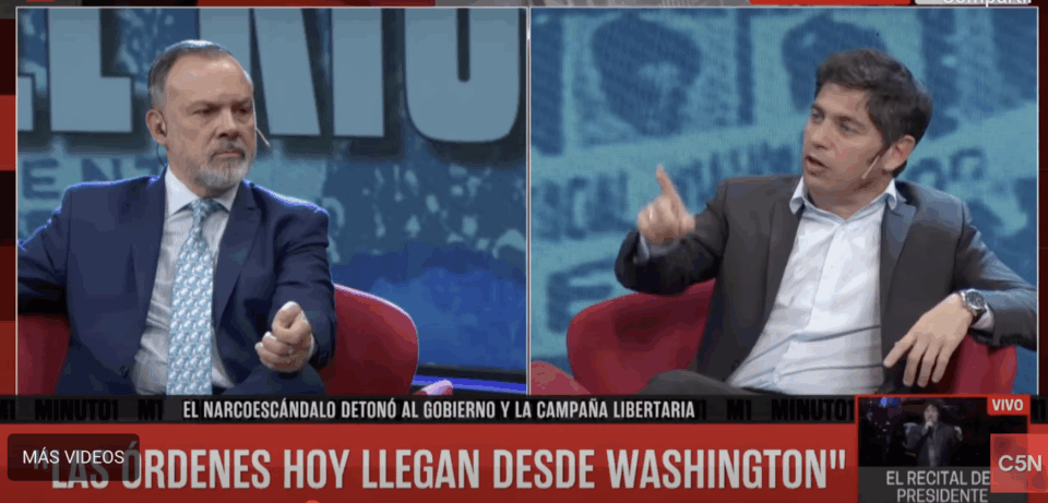 En el mismo momento en que el presidente montaba su show bizarro en el Movistar Arena, el gobernador Axel Kicillof participaba del programa Minuto Uno y fue tajante: “Hay que resaltar el grado de locura que esto implica”.