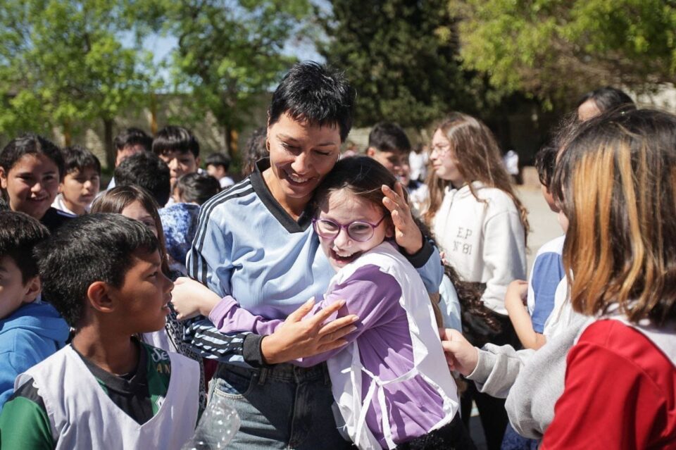 “Cuando vivo mañanas como ésta las palabras me nacen del corazón. Primero, quiero agradecerle mucho a toda la comunidad educativa, a las seños, la directora, la portera, a los auxiliares de la cocina y a todos los que trabajan en la escuela, y a las mamás, los papás, y a las familias solidarias que se comprometen con la cooperadora de la escuela”, destacó Mayra, que fue acompañada por el secretario de Educación, Culturas y Deportes, Joaquín Desmery.