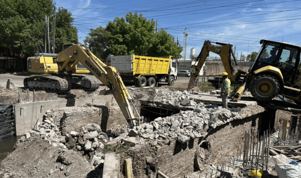 Actualmente, los trabajos se desarrollan en la intersección de las calles Presidente Roberto M. Ortiz y Álvaro Pintos, dentro del Sector Industrial Planificado de Almirante Brown, donde se está demoliendo la antigua alcantarilla sobre el Arroyo del Rey para construir una nueva estructura que funcionará como puente, mejorando la circulación y el drenaje del agua en toda esa zona.