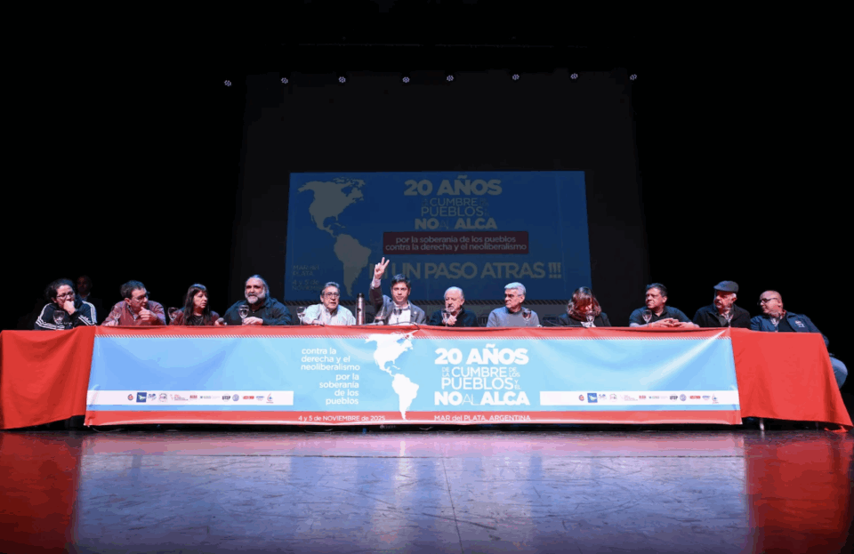 El gobernador de la provincia de Buenos Aires, Axel Kicillof, clausuró el encuentro en conmemoración de los 20 años de la Cumbre de los Pueblos y del “No al ALCA”, realizado en el Teatro Auditórium de Mar del Plata, marcando el cierre de dos jornadas de debate protagonizadas por organizaciones sociales, sindicales y políticas.