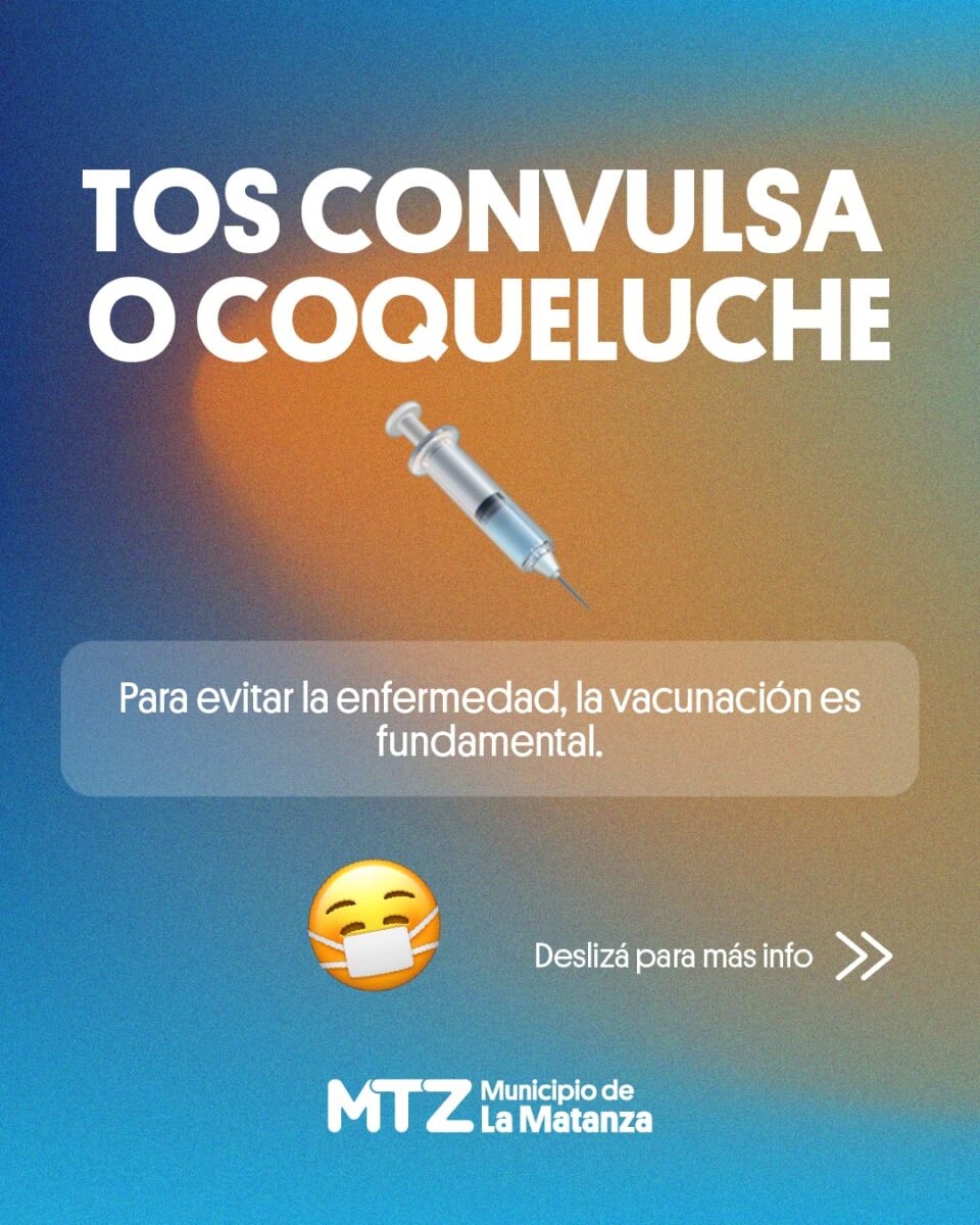 La Tos convulsa es una enfermedad respiratoria causada por la bacteria Bordetella pertussis, se contagia de persona a persona y sus síntomas se caracterizan por una tos intensa y persistente, que puede durar varias semanas. Suele afectar a todos los grupos de edad, y es especialmente grave en niñas y niños menores de 1 año, lactantes y personas con enfermedades crónicas.