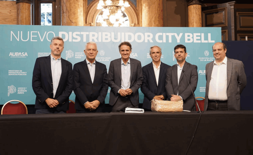 El intendente de La Plata, Julio Alak, y el ministro de Infraestructura y Servicios Públicos de la Provincia de Buenos Aires, Gabriel Katopodis, encabezaron el acto de licitación pública para la obra del nuevo distribuidor de la Autopista Buenos Aires-La Plata en City Bell junto al presidente de AUBASA, José Arteaga.