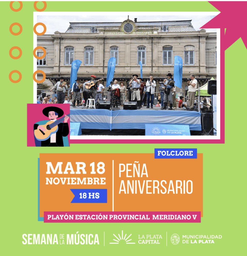 Este martes 18 de noviembre, el playón de la Estación Provincial se convertirá en uno de los epicentros de la Semana de la Música con una peña a puro folclore que reunirá a vecinos y visitantes en el histórico barrio Meridiano V.