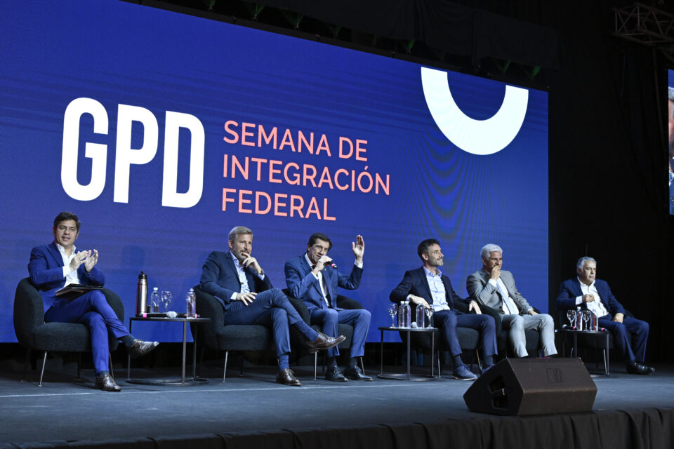 El gobernador de la provincia de Buenos Aires, Axel Kicillof, participó este jueves del cierre de la 6° edición del Programa Federal de Formación “Gestión para el Desarrollo”, organizado por el Consejo Federal de Inversiones (CFI). Fue en el Goldencenter Eventos, en la Ciudad Autónoma de Buenos Aires, junto al secretario general del CFI, Ignacio Lamothe, y los gobernadores de Entre Ríos, Rogelio Frigerio; de Jujuy, Carlos Sadir; de San Luis, Claudio Poggi; y de Mendoza, Alfredo Cornejo.