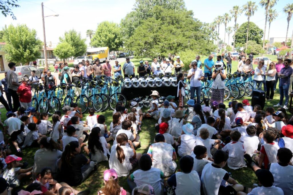 La actividad se desarrolló en la plazoleta de la Avenida José Hernández, donde se otorgaron bicicletas para escuelas del distrito y para integrantes del taller protegido de producción de huerta orgánica, cocina y bolsas de residuos, APAPEL, Asociación de Padres y Amigos de Personas Especiales de Lezama.