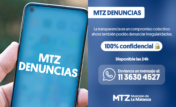 MTZ Denuncias es un canal disponible para la comunidad que permite a vecinas y vecinos reportar de manera 100% anónima y confidencial situaciones sospechosas, presuntos puntos de comercialización de drogas, desarmaderos de autos, actividades ilícitas en general y, ahora también, pueden denunciar irregularidades que colaboren con mantener la transparencia administrativa en todo el distrito. Esta línea no reemplaza al 911 ante una emergencia. Las emergencias deben seguir siendo comunicadas a través del 911.