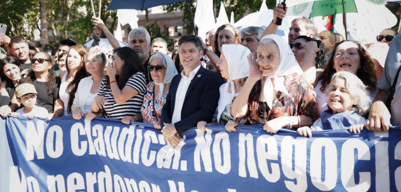 “Estamos aquí para homenajear a Hebe y con ella a las Madres de Plaza de Mayo que siempre dieron la lucha y hoy vuelven a ser víctimas del intento de ninguneo y persecución del Gobierno nacional”, sostuvo el Gobernador y añadió: “Decimos con fuerza que son 30 mil los compañeros y compañeras desaparecidas, y que no va a venir ningún mentiroso e ignorante a discutir lo que en la Argentina es una bandera para siempre: la memoria, la verdad y la justicia”.