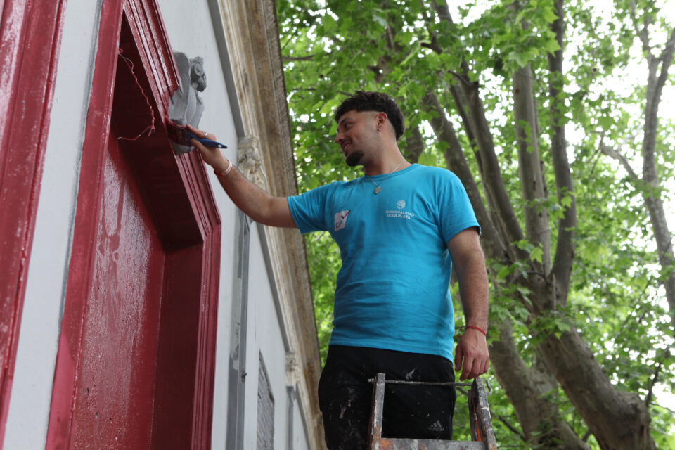 En paralelo, se desarrollaron trabajos de restauración y puesta en valor en la cruz emplazada en la rotonda de avenida 44 y Ruta 36, en diversos sectores del Parque San Martín y en la fachada de la Escuela N° 63, ubicada en 44 y 155.