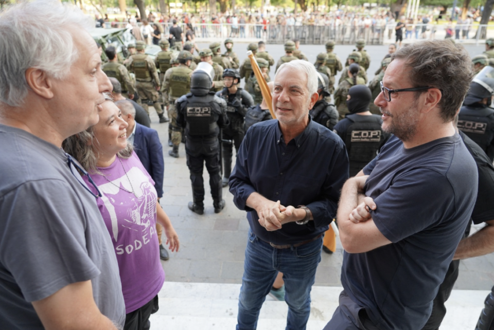 En esta oportunidad, el jefe comunal estuvo acompañado por la secretaria de Cultura de la Municipalidad de La Plata, Ana Negrete; y por los productores de la miniserie, Mariano Kucar y Danisa Mungia.