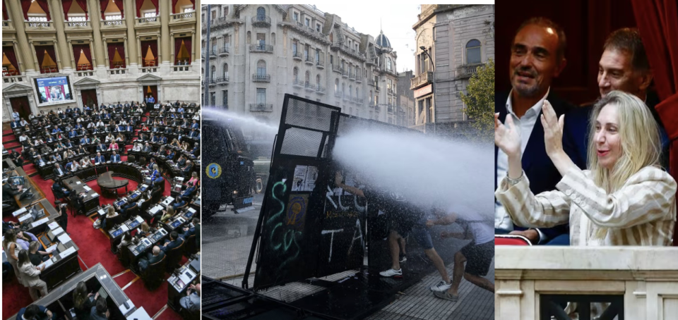 El clima político fue áspero. Afuera del Congreso, trabajadores se movilizaron contra la reforma y fueron reprimidos. Adentro, el oficialismo consolidó una mayoría con apoyos heterogéneos y algunas ausencias estratégicas.