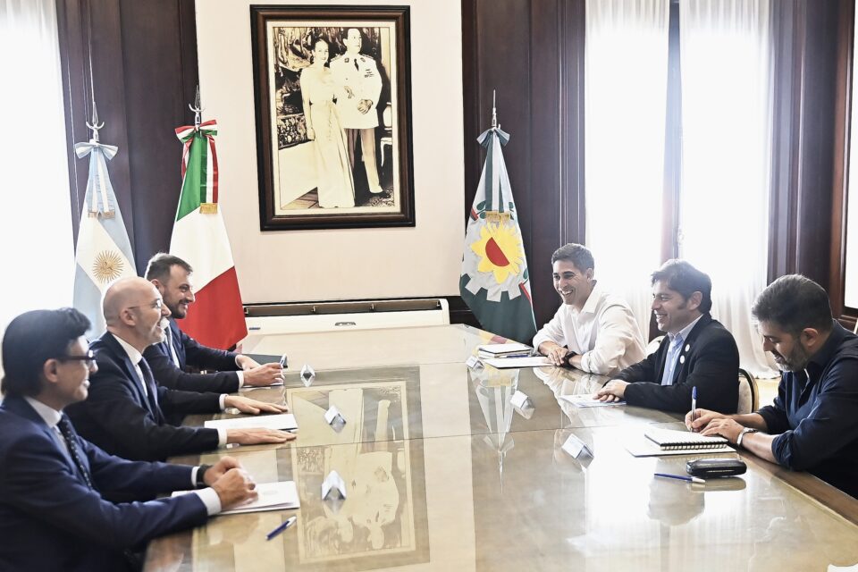 El gobernador de la provincia de Buenos Aires, Axel Kicillof, recibió este miércoles al embajador de Italia, Fabrizio Nicoletti, para impulsar la cooperación bilateral y potenciar las oportunidades conjuntas. Fue en el Salón de Acuerdos de la Gobernación, junto al ministro de Gobierno, Carlos Bianco, y el subsecretario de Relaciones Internacionales e Interjurisdiccionales, Juan Manuel Padín.