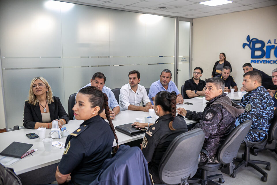 El intendente interino de Almirante Brown, Juan Fabiani, junto a la jefa de Gabinete, Paula Eichel, encabezaron una reunión con autoridades policiales y del Ministerio de Seguridad de la Provincia de Buenos Aires, con el objetivo de continuar profundizando las herramientas de prevención en el distrito.