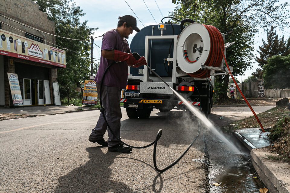 Mientras tanto, camiones desobstructores del Municipio limpian las bocas de tormenta en los barrios multiplicando las acciones preventivas que buscan mitigar los efectos del temporal.