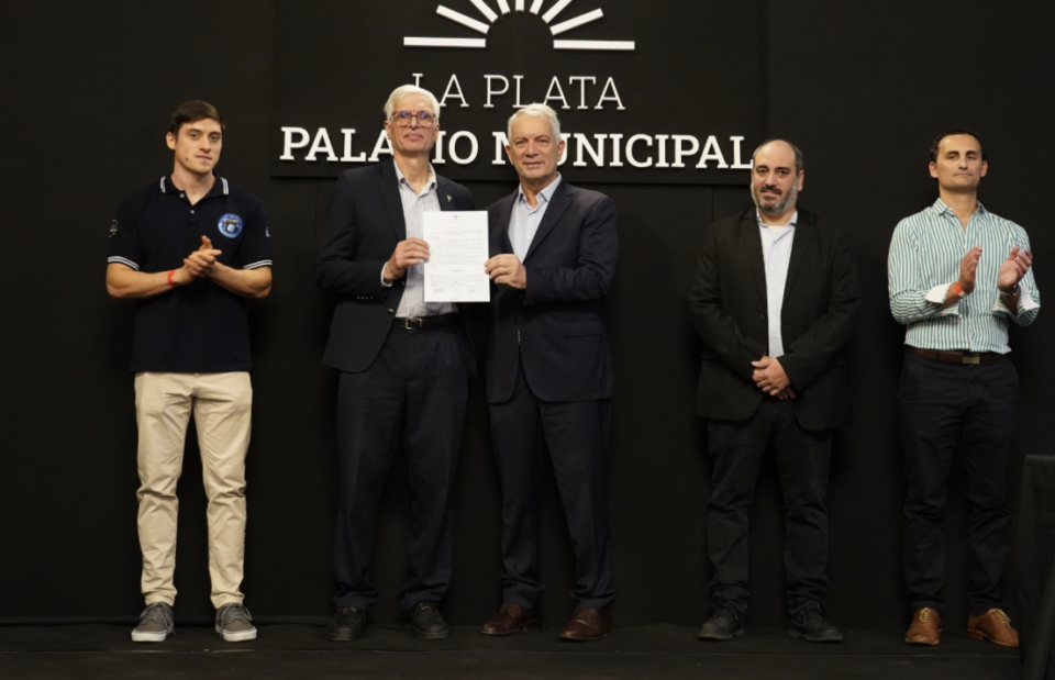 En este marco, el jefe comunal les entregó diplomas a quienes participaron y placas grabadas a las instituciones que colaboraron y declaró de Interés Municipal la labor desarrollada por la Facultad de Ingeniería, el CTA, el Instituto Argentino de Radioastronomía y el SENyT por su aporte científico, tecnológico y académico y su contribución al posicionamiento de La Plata en el ámbito del desarrollo aeroespacial.