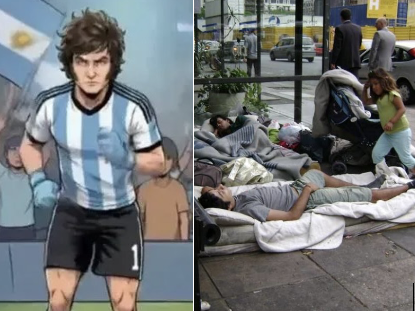 En medio de esa desesperación, los “asesores estrella” le propusieron realizar un video imaginario en el que el presidente se convierte en Diego Maradona, recreando el gol a los ingleses con el relato de Víctor Hugo Morales. En esa fantasía, Milei derrota a la inflación, al déficit, a los “ñoquis del Estado”, a los “gerentes de la pobreza” y al narcotráfico. Al final, es aplaudido por Donald Trump en la tribuna, junto a Luis Caputo, Karina Milei y Federico Sturzenegger.