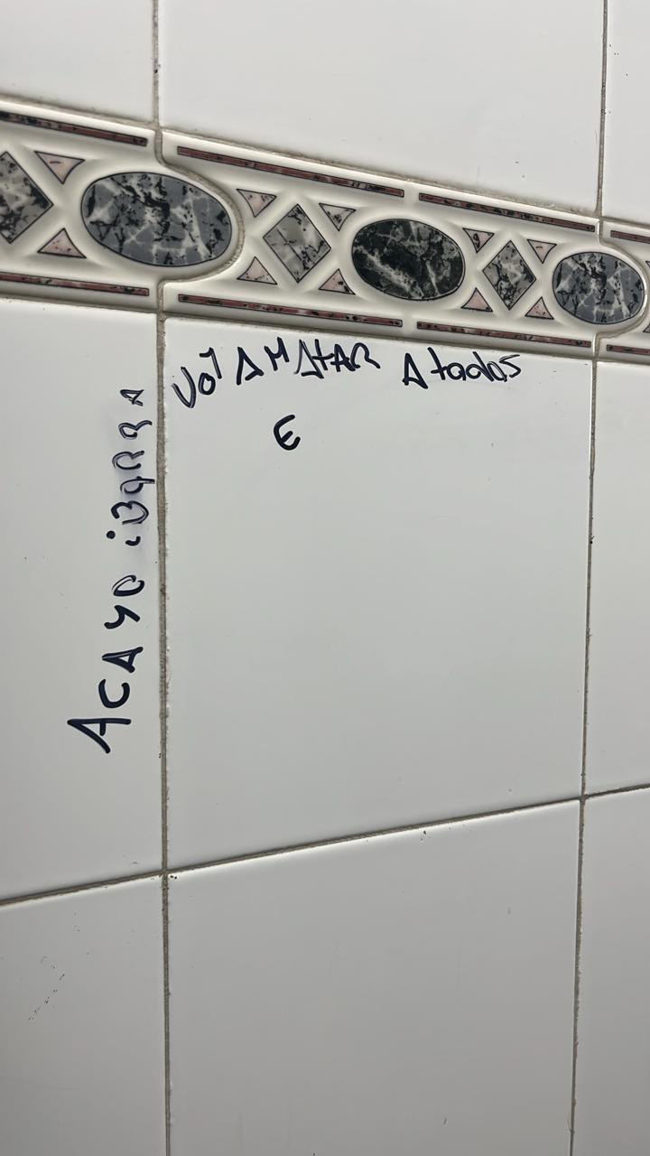 El hecho mencionado se registró en la Escuela N° 58, de Solano, donde autoridades advirtieron una inscripción en los azulejos del baño de varones, realizada con fibra negra, que hacía referencia a un presunto “tiroteo escolar” con fecha consignada y contenía el nombre y apellido de un alumno.
