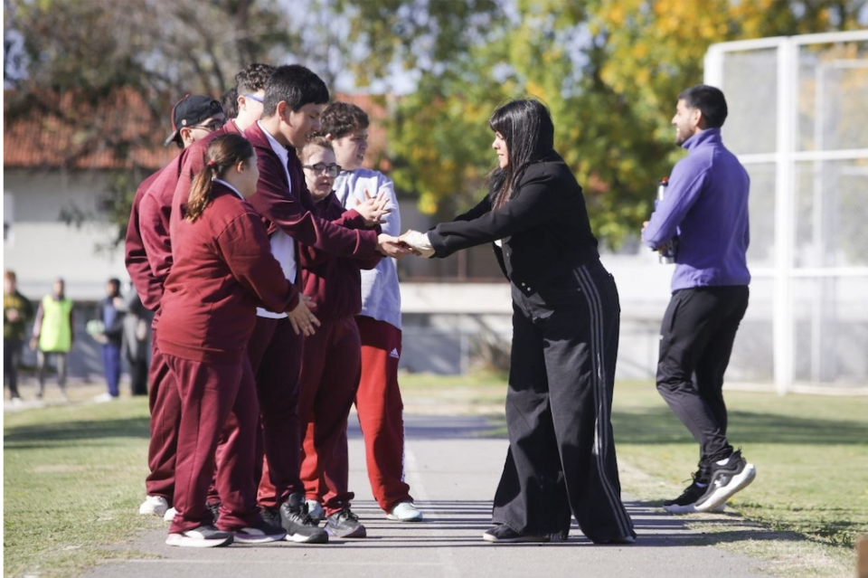 “Hoy lo importante es encontrarnos, compartir y divertirnos en cualquiera de las disciplinas donde participen. Darles la bienvenida a este polideportivo que siempre los va a recibir y agradecerles el trabajo a todos los profes y las dires, que hacen lo posible para que todos tengan esta oportunidad”, afirmó Eva frente a los alumnos, acompañada por el secretario de Deportes, Nicolás Mellino, y su par de Educación y Culturas, Evangelina Ramírez.